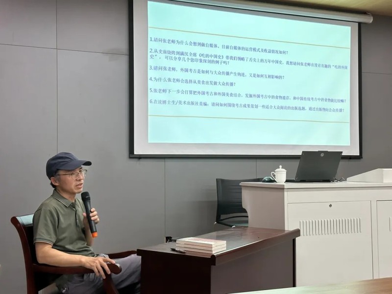进入交流环节,张良仁教授针对同学们感兴趣的问题进行了回答。问题涉及了自媒体运营,外国美食,考古与大众传播的联系,AI时代下考古学处境等诸多内容。他表示以后会有将外国考古与外国美食相结合的创作计划,大家可以期待。